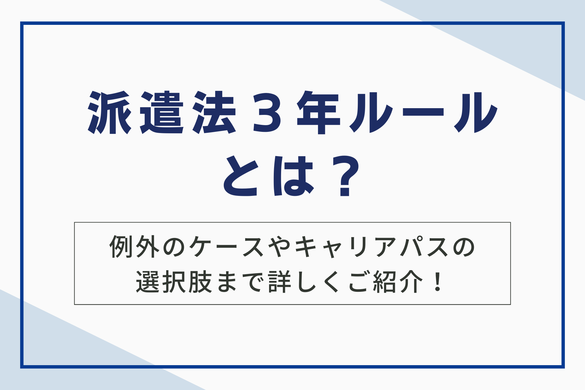派遣法3年ルールとは?例外のケースやキャリアパスの選択肢まで詳しくご紹介!