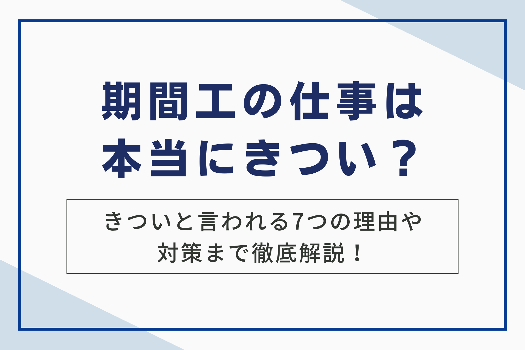 期間工の仕事は本当にきつい?きついと言われる7つの理由や対策まで徹底解説!