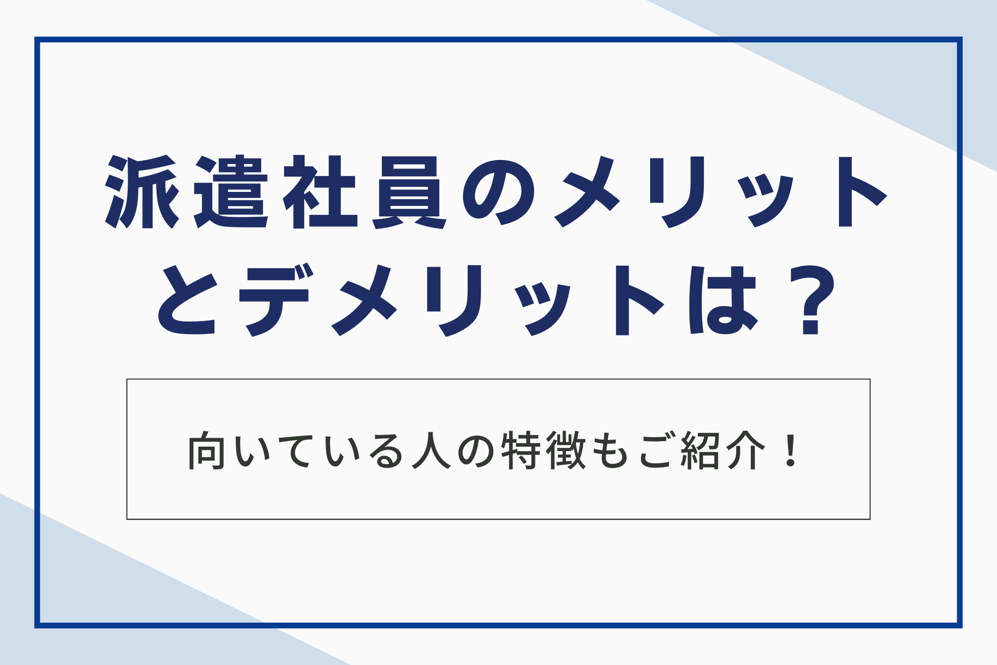 派遣社員のメリットとデメリットは?向いている人の特徴もご紹介!
